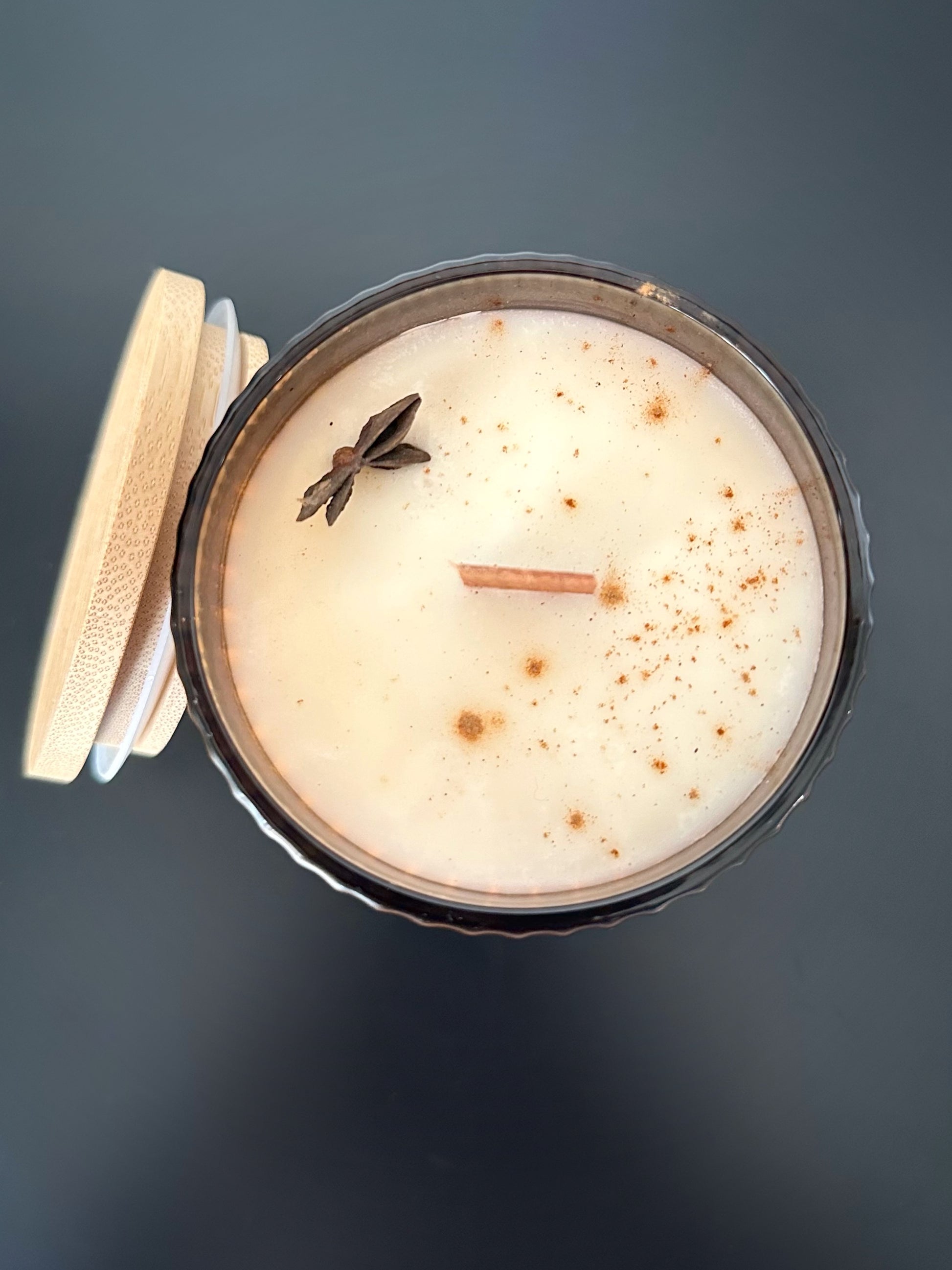 Pumpkin spice everything please! Just the perfect combination of pumpkin to fill your home with the warm and cozy scent of fall. Slow burning Wooden wick poured into a beautiful ribbed glass amber color jar topped with a wood lid, Perfect accessory to bring that extra warm tones to fulfill that fall mood in your home. Topped with some star clove and cinnamon for decoration. Dry herbs/accessories must be removed before burning.